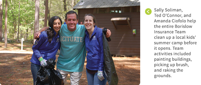 Travis describes Borislow’s program as experiential and culture-based. “About 6 years ago we realized our employees relate on a very personal level with their clients, so we formed a Charitable Giving team which supports those inclined to work in the community to make it better. For instance, over the holidays we went to a local nursing home to sing Christmas carols, make ornaments for their trees, and play games with the residents. Earlier in the year, we went to a local camp to do some painting and generally spruced up the place before the season started.”